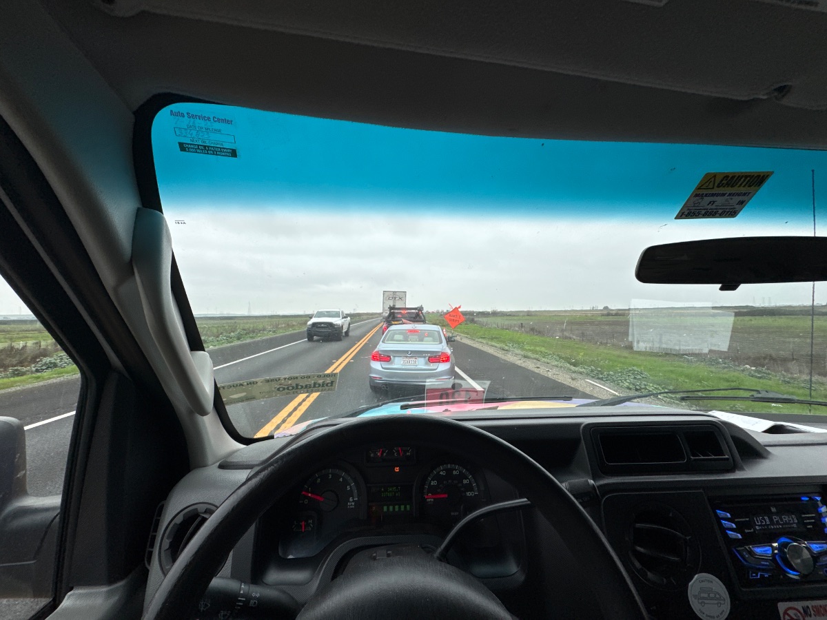 They'd named ours "Crayola". It's a 2012 Econoline with 337k miles on it. We went to collect it at a weird facility in Antioch; it had no plate or title, but we'd determined through VIN snooping that it had been registered and smogged in California. So, we embarked upon a less-than-legal drive home.